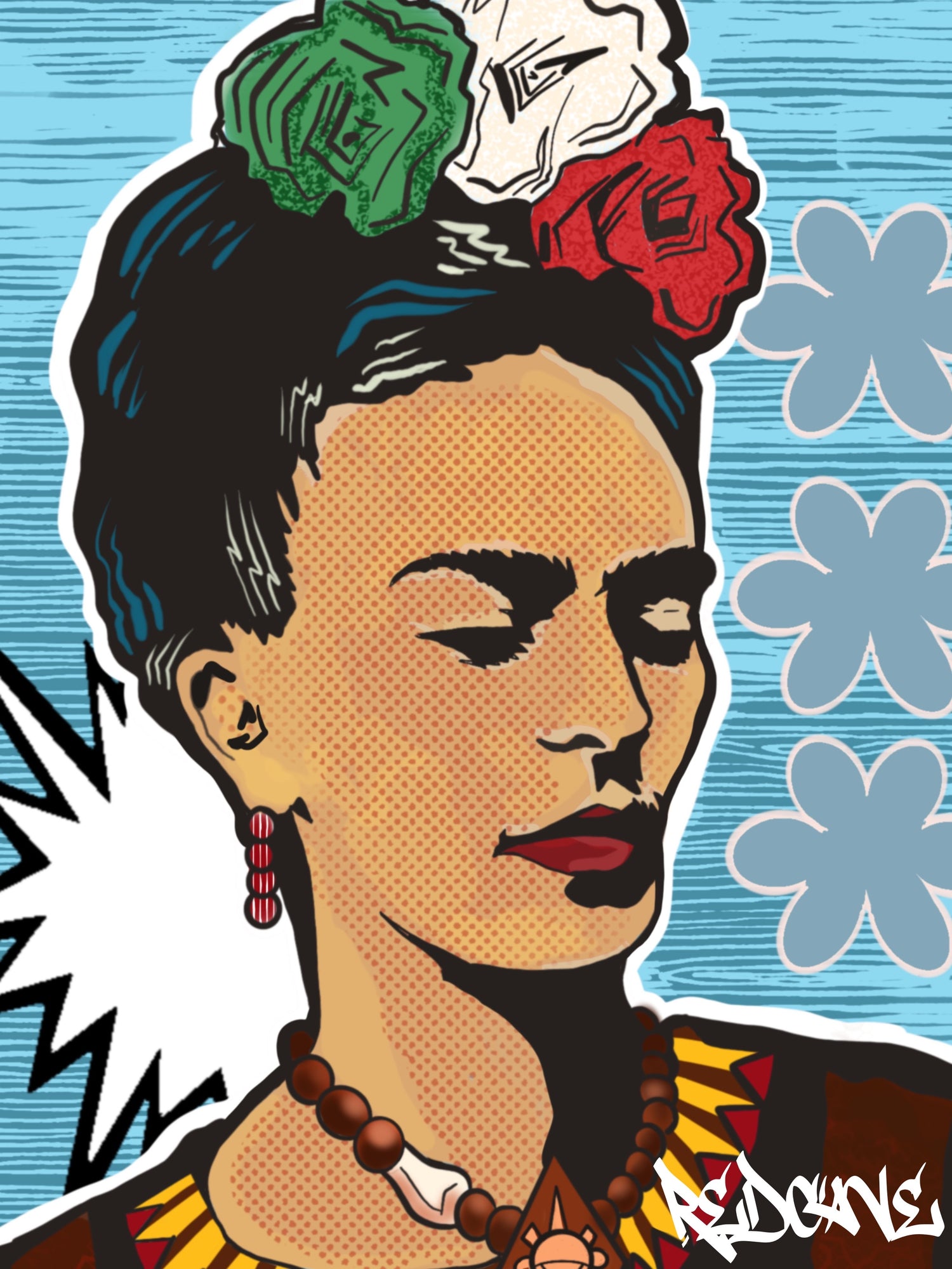 This is a pop art illustration of the famous Mexican painter, Frida Kahlo. This digital illustration brings together the legacy that Kahlo brought in the late 40's and 50's. Her self-portraits influenced Alex to merge pop art with Mexican influential artists.